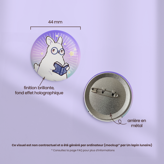 Badge effet holographique 44mm LAPIN LECTEUR