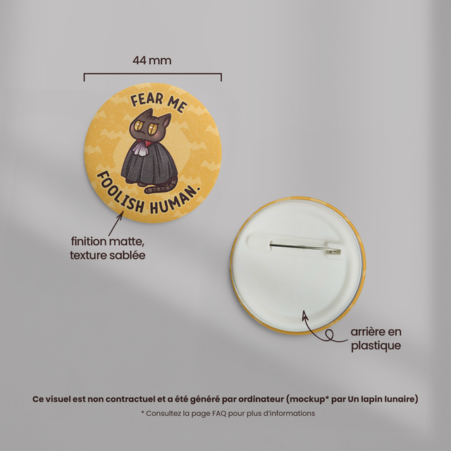 Badge effet mat sablé 44mm FEAR ME
