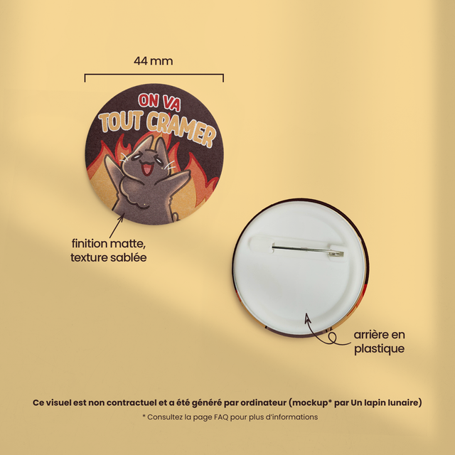 Badge effet mat sablé 44mm ON VA TOUT CRAMER (AGENT DU CHAOS)