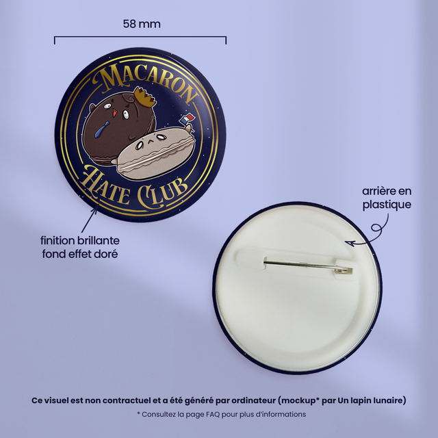 Badge effet or 58mm MACARON HATE CLUB